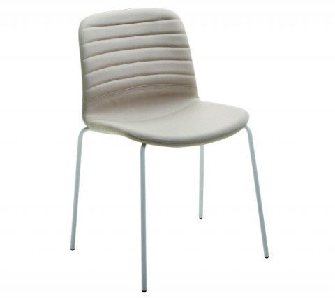 Materials: Side chair with a painted steel rod sled base. Seat channel upholstered with fabric or leather.